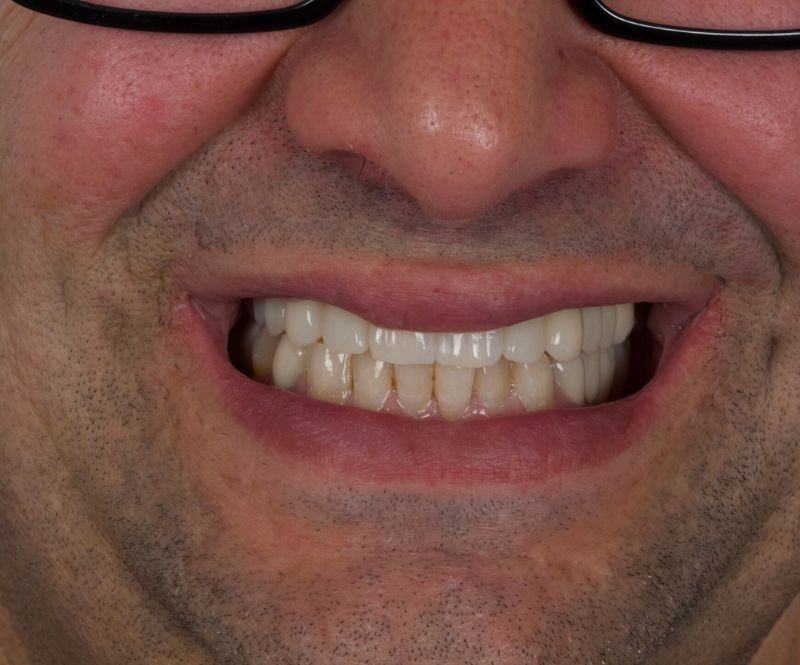 Mira la increíble transformación con esta rehabilitación completa en zirconio-cerámica. Satisfechos de haberle devuelto la confianza y la función de su boca completa.